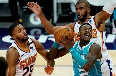 黄蜂3人20+险胜太阳 保罗20+8+10布克33分失扳平球